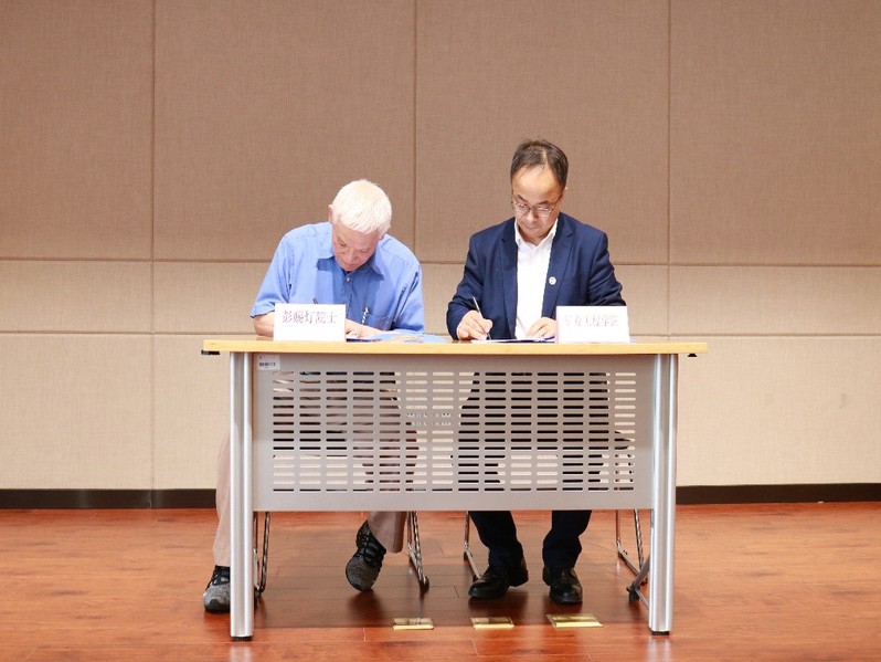 张吉雄院长代表学院接受了捐赠,与彭赐灯院士签署了捐赠协议。院、系领导及部分学生代表上台参与合影留念。