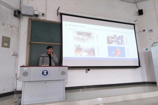 随后,两位优秀学长分别从不同角度分享了自己的经验。盛建超给同学们讲述了自己的保研经历,他首先给大家展示了自己在大学期间获得的荣誉和相关证书,对保研所须要求和注意事项进行了强调,并与低年级同学分享了他的学习经验及方法。盛建超认为,大学生应该积极参加科技创新项目和数学建模等比赛来锻炼自己,他希望大家能够好好珍惜时间、积极抓住机遇。