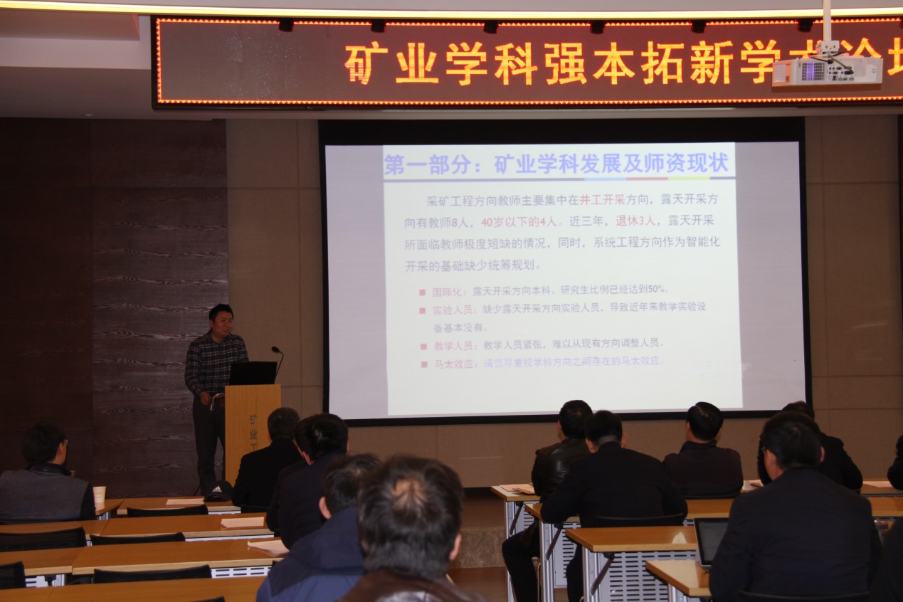 今年是我校“一流学科”建设实施元年,为深入实施强本拓新学科发展战略,围绕能源、矿业两个主题学科领域,主动布局、系统布局、长远布局,进一步把握好采矿核心关键共性技术持续创新和强化应用集成研究,经过一段时间的精心筹备,以采矿工程学科为主,工业工程、交通运输专业融入,共同举办了主题为“融合、团队、强本、创新”的矿业学科强本拓新学术论坛。