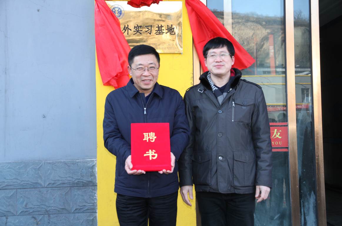 郑西贵教授受学院委托与友众煤业有限公司签订院企合作协议,并举行校外实习基地挂牌仪式,同时聘请友众煤业有限公司郑允顺总经理为研究生校外指导教师。友众煤业有限公司总经理郑允顺、总工程师尹训孝等各科室及矿业工程学院实习生100余人出席了本次仪式。