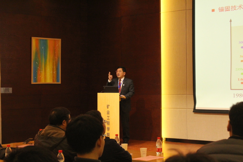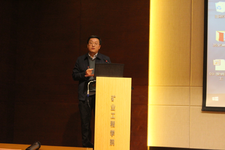 张农院长代表学院致辞。并以“深井卸压开采与围岩控制”为题做了学术报告。他在报告中指出,21世纪是深地开发、深部构建、深度利用、新能源结合的新时代,应该深入透视我国的深部开采生态,正视深部开采的各种挑战,积极寻找相应的解决方案与对策。