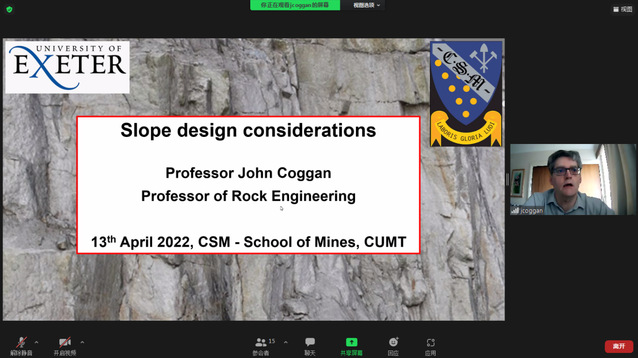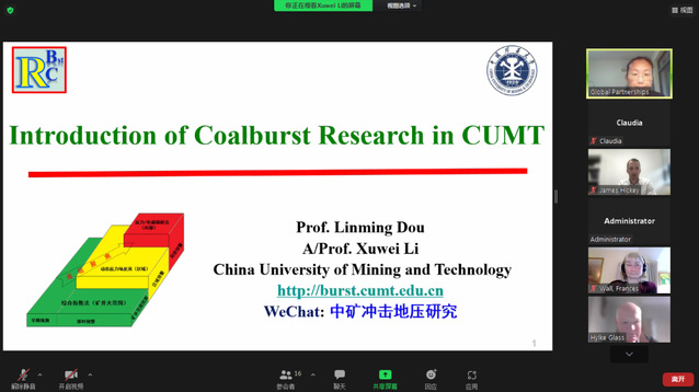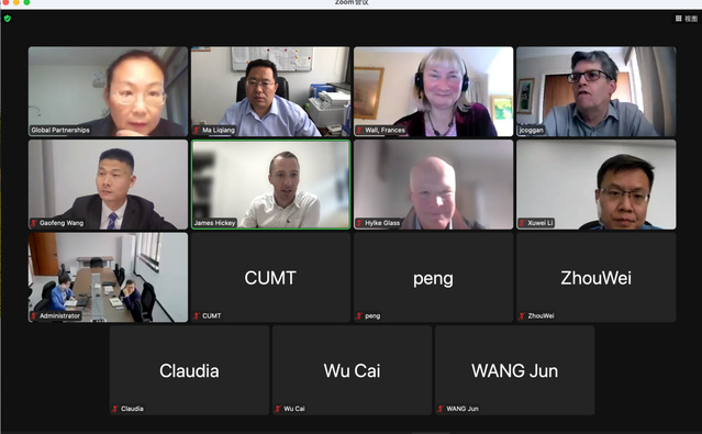 2022年4月13日,在学校国际合作交流处的组织协调下,我院与英国埃克塞特大学坎伯恩矿业学院(Camborne School of Mines, University of Exeter)召开了国际学术研讨会。埃克塞特大学坎伯恩矿业学院John Coggan教授、Frances Wall教授、Hylke J. Glass教授、Pat Foster教授和James Hickey副教授,以及国际事务部工作人员参加会议;我校国际合作交流处交流合作办公室权学红主任,我院窦林名教授、马立强教授、周伟教授、蔡武教授、李许伟副教授、黄鹏副教授、王高峰等老师,以及人才与学科工作办公室王君主任和文涛等工作人员参加了会议。