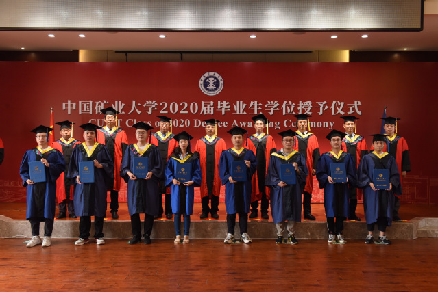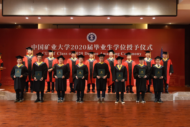 合影结束后,2020届毕业生学位授予仪式在矿业学院楼学术报告厅举行。院长张吉雄、院党委副书记畅军亮、学位评定分委员会委员、各系(所)主任以及87名硕士、166名学士参加了仪式。硕士学位授予仪式由副院长李学华教授主持,学士学位授予仪式由副院长尚涛教授主持。