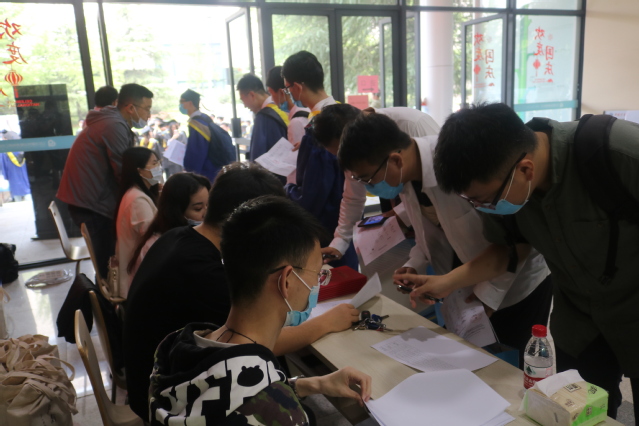 仪式结束后,学院在一楼大厅有序开展了毕业生离校联合办公,各科室老师和学生助理联合协作,帮助毕业生办理各项离校手续。期间,院党委书记陈新忠、副书记畅军亮等学院领导特地来到联合办公现场指导开展工作,并为毕业生送上美好的祝福。此前,学院提前召开了工作协调会协商确定联合办公相关流程,明确了责任分工,强调了工作的严肃性和重要性,确保毕业生联合办公有序、高效开展。