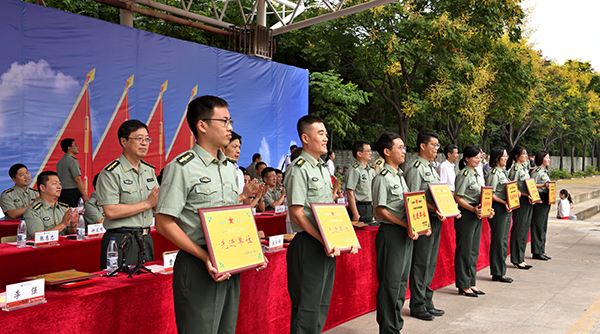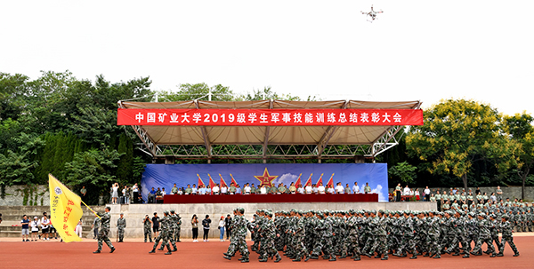 2019级新生军训总结表彰大会在东坡运动场举行。学校领导刘波、宋学锋、曹德欣、赵建岭、李强、付恒升、周国庆、卞正富、王增国、周福宝,承训部队首长、各学院主要负责人以及学生军训旅组成单位负责人出席了本次大会。