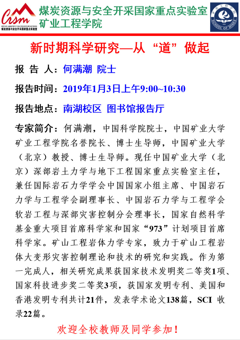 学术报告:新时期科学研究—从“道”做起