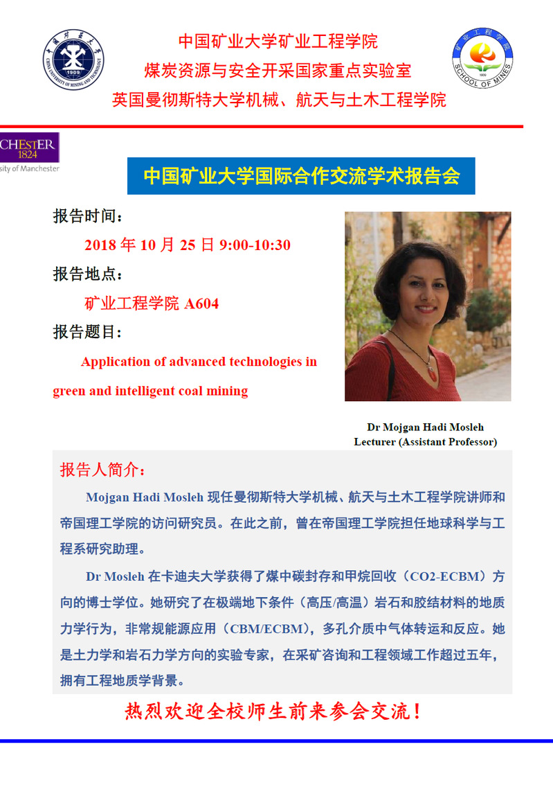 学术会议 污污漫画 - 学科动态 - 学术会议 - 正文 学术报告:Application of advanced technologies in green and intelligent coal mining 作者:董成亮浏览:时间:2018-10-22 新闻来源:污污漫画 摄影: 责任编辑: 审核: