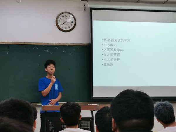 学习委员黄伟对晚自习和课堂出勤情况,以及目前班级总体的学习成绩做出了总结,并站在工科学子的角度上希望大家能够重视高等数学。随后他对同学们日后的学习规划提出了部分建议。他指出,大学没有任何任何时间是可以荒废的,并根据与学长的交流以及自己的心得感受,对大学毕业后的未来作出几种可能的规划。班主任曹安业站在更高的角度上向同学们指出本科阶段的不足,并且希望大家能够在基础打牢的同时向着科研方向努力。