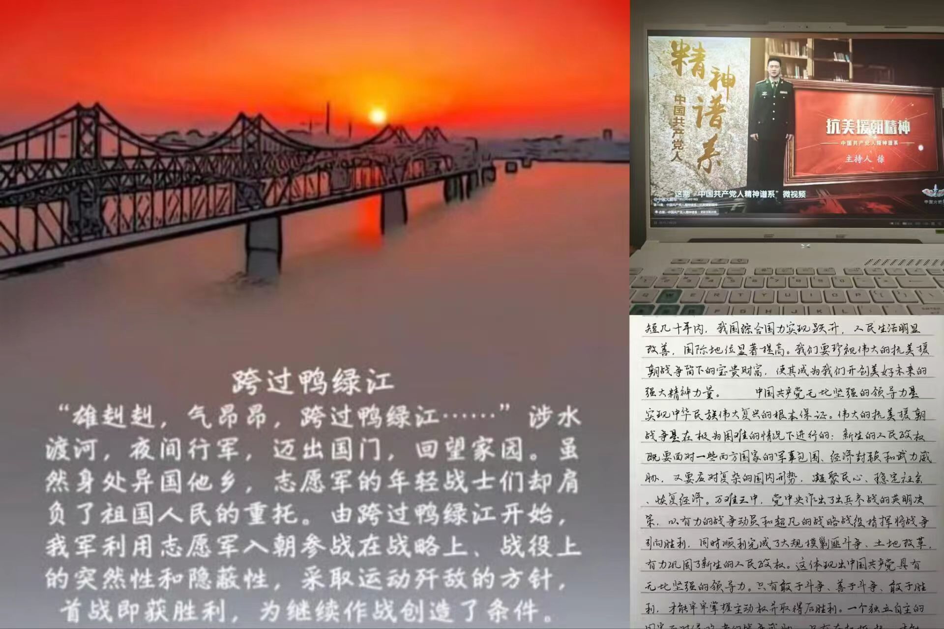 此次活动采用线上参与的方式,吸引了80余位同学的积极参与。学生们纷纷用文字和照片分享了自己对抗美援朝精神的理解与感悟,充分展现了当代青年学子的才华与风采。