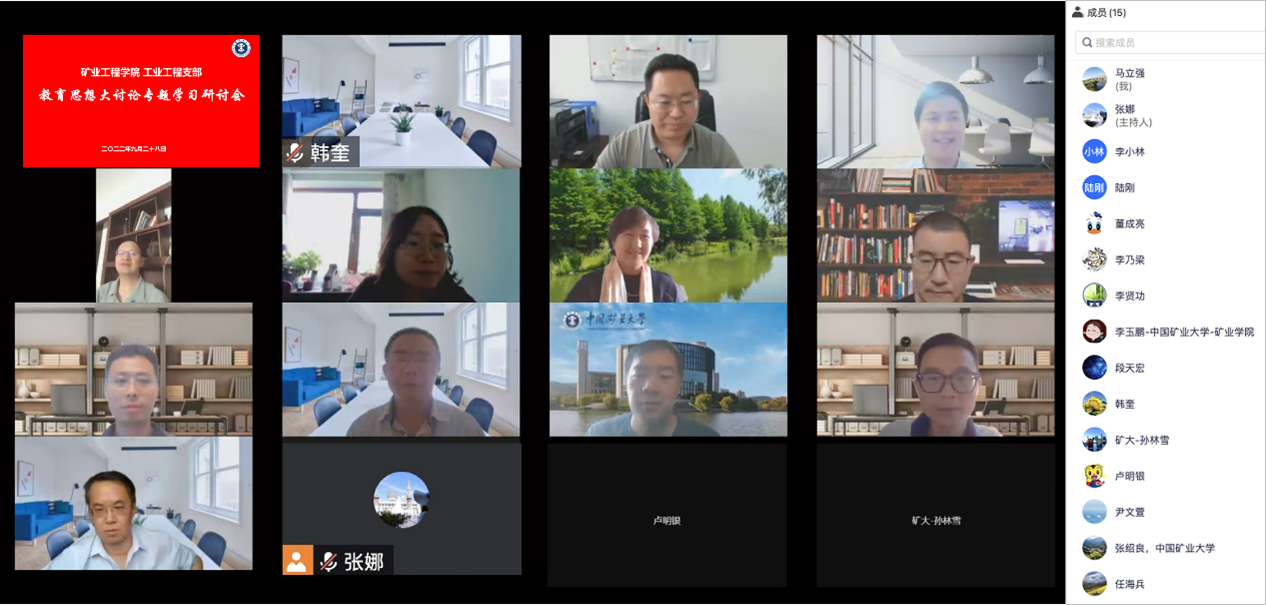 2022年教育思想大讨论实施方案》,积极组织全体教师深入学习相关文件资料、制定学习讨论计划。本次专题学习研讨会对工业工程专业人才培养进行了充分讨论,坚定了矿业特色发展的方向,从实习实践、协同育人、培养方案改革等多方面给出具体意见和建议,为基础宽厚、知识面广、适应力强的高质量人才培养提供了有效保障。